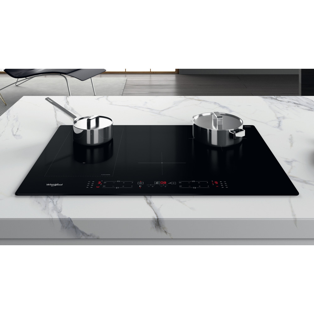 4 inductiezones. flexiCook technologie laat u meerdere pitten tot één zone samenvoegen, ideaal voor grotere potten en pannen. Kenmerken van deze Whirlpool inductiekookplaat: Een elegante technologie die de pan en niet de kookplaat verwarmt, energieverspreiding beperkt en perfecte kookresultaten biedt. Elektrische voeding. Deze inductiekookplaat wordt standaard op 2 fasen aangesloten. Het is mogelijk om deze aan te sluiten op 1 fase of 3 fasen, afhankelijk van de stoppenkast en de functie Power Management.