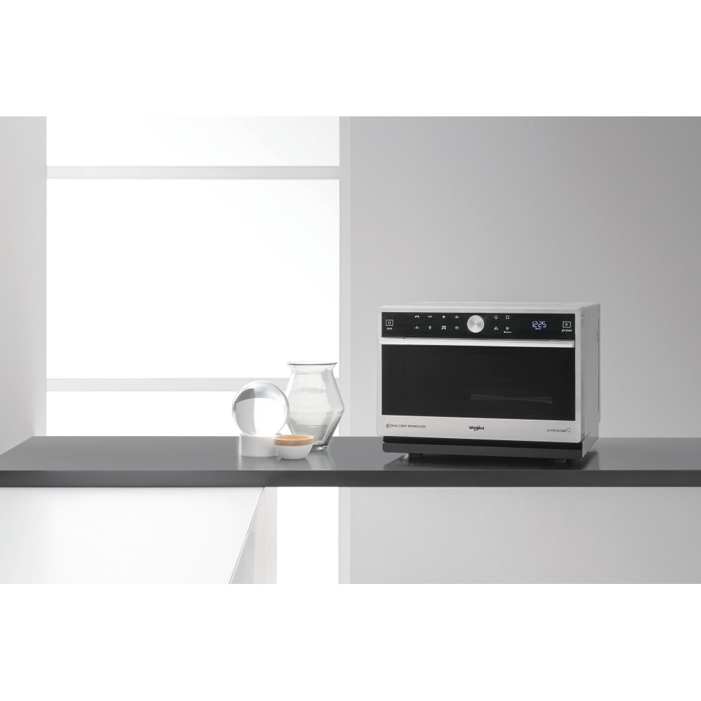 Kenmerken van deze Whirlpool vrijstaande magnetron: uitmuntende ruimte binnenruimte. Combinatietechnologie, biedt de kookflexibiliteit van traditionele ovens. Exclusieve 6th SENSE technologie stelt tijdens het koken automatisch de tijd, de temperatuur en het energieverbruik in. Crisp functie, voor heerlijk krokante quiches, pizza's en pasteitjes. Jet Defrost, voor uitzonderlijk snel en gelijkmatig ontdooien.