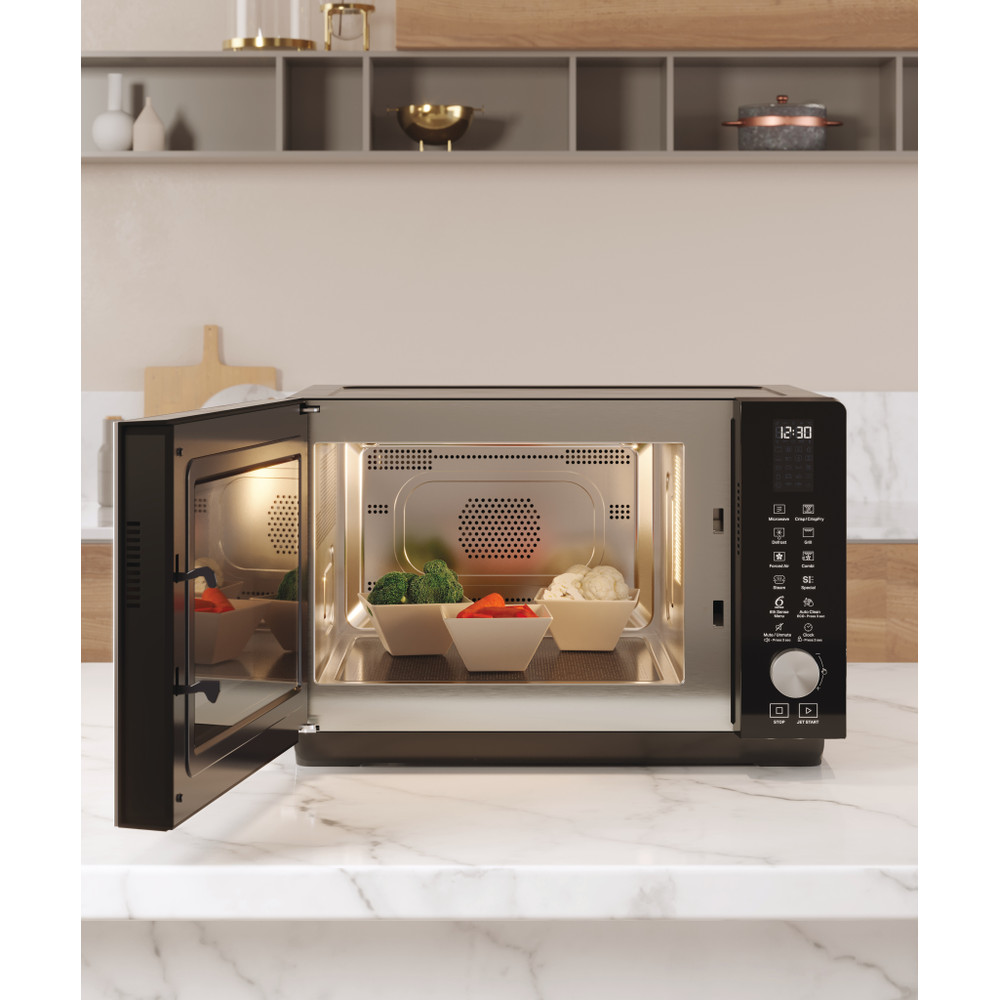 Kenmerken van deze Whirlpool vrijstaande magnetron: kleur zwart. Combinatietechnologie, biedt de kookflexibiliteit van traditionele ovens. Exclusieve 6th SENSE technologie stelt tijdens het koken automatisch de tijd, de temperatuur en het energieverbruik in. Crisp functie, voor heerlijk krokante quiches, pizza's en pasteitjes. Stoomfunctie, voor gezonde, lichte en smakelijke maaltijden met één druk op de knop.
