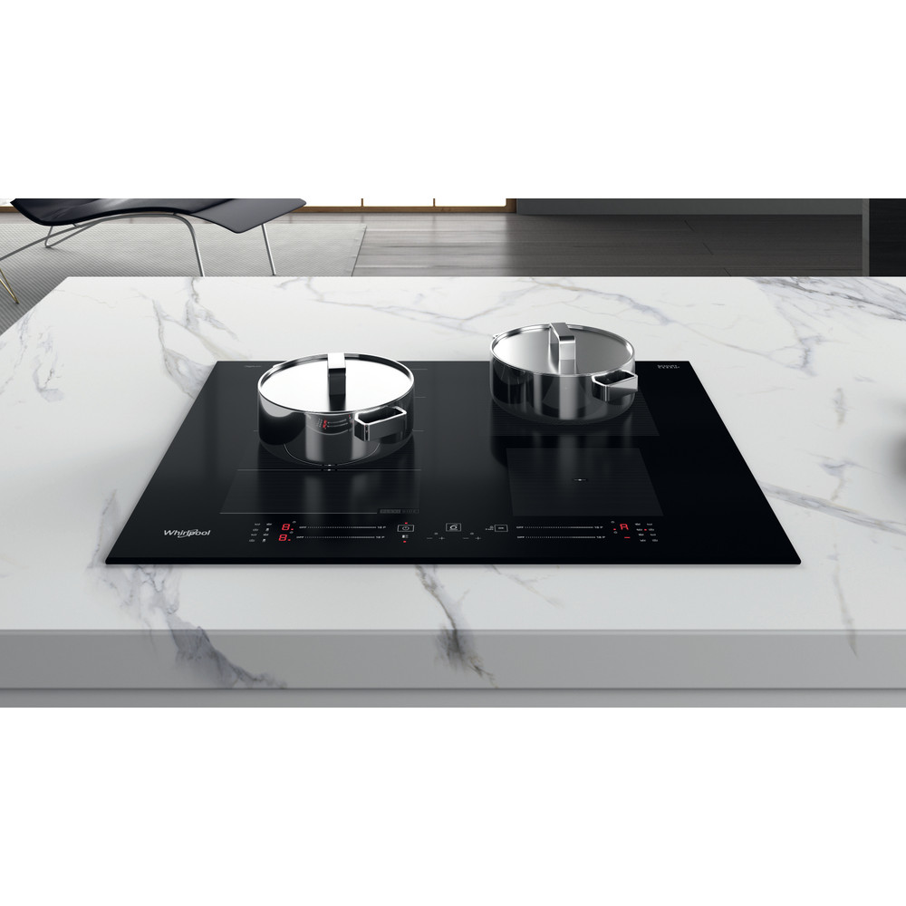 4 inductiezones. flexiCook technologie laat u meerdere pitten tot één zone samenvoegen, ideaal voor grotere potten en pannen. Intuïtieve schuifregelaar, voor moeiteloze bediening van de apparaatinstellingen. Kenmerken van deze Whirlpool keramische inductiekookplaat: Een elegante technologie die de pan en niet de kookplaat verwarmt, energieverspreiding beperkt en perfecte kookresultaten biedt. Elektrische voeding.