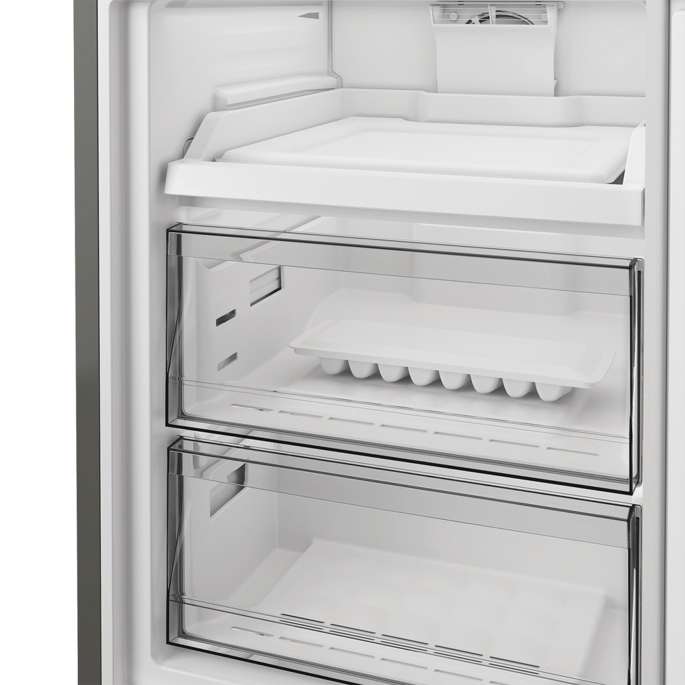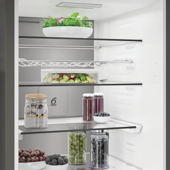Kenmerken van deze Whirlpool koelkast: een hoog model, geschikt voor het hele gezin. Een ventilator die voor een soepele en gelijkmatige luchtstroom binnen in het apparaat zorgt, voor optimale ventilatie. 6th SENSE sensoren verlagen de temperatuur in het apparaat automatisch wanneer nieuwe etenswaren worden opgeslagen, voor een lager energieverbruik. Handig flessenrek om uw flessen veilig te bewaren. Vakantiemodus, verlaagt het energieverbruik wanneer u weg bent.