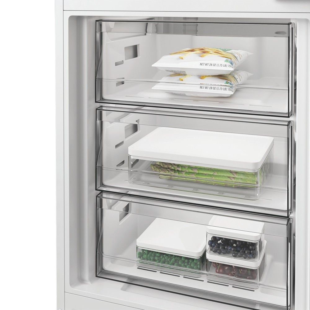 Kenmerken van deze Whirlpool koelkast: glazen legplateaus, zowel robuust als elegant. Een ventilator die voor een soepele en gelijkmatige luchtstroom binnen in het apparaat zorgt, voor optimale ventilatie. 6th SENSE sensoren verlagen de temperatuur in het apparaat automatisch wanneer nieuwe etenswaren worden opgeslagen, voor een lager energieverbruik. Handig flessenrek om uw flessen veilig te bewaren. Vakantiemodus, verlaagt het energieverbruik wanneer u weg bent.