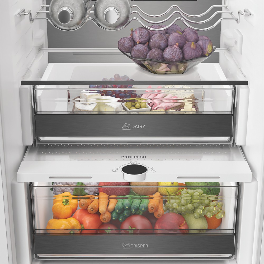 Kenmerken van deze Whirlpool koelkast: een hoog model, geschikt voor het hele gezin. Een ventilator die voor een soepele en gelijkmatige luchtstroom binnen in het apparaat zorgt, voor optimale ventilatie. 6th SENSE sensoren verlagen de temperatuur in het apparaat automatisch wanneer nieuwe etenswaren worden opgeslagen, voor een lager energieverbruik. Handig flessenrek om uw flessen veilig te bewaren. Vakantiemodus, verlaagt het energieverbruik wanneer u weg bent.