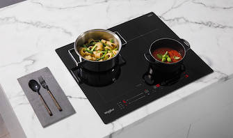 ConnexionZone biedt grote potten en pannen de perfecte ruimte. Twee verschillende kookzones kunnen apart gebruikt worden of eenvoudig aan elkaar worden gekoppeld wanneer je grote pannen wilt gebruiken.
